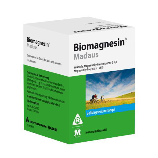 Biomagnesin Madaus löst Muskelkrämpfe bei Magnesiummangel. Der Gehalt einer Biomagnesin Madaus Lutschtablette entspricht 43 mg Magnesium.