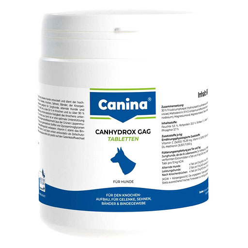 Canina CANHYDROX GAG Tabletten vet. ist speziell für große und schwere Hunderassen entwickelt worden. Es kann für eine hochwertige Versorgung des Bindegewebes, der Gelenke, Knochen, Sehnen, Bänder, Knorpelsubstanz und der Zähne eingesetzt werden.