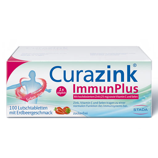 Die essenziellen Spurenelemente Zink, Selen und Vitamin C spielen unter anderem für die normale Funktion des Immunsystems eine wichtige Rolle. Curazink® ImmunPlus kombiniert in einer leicht einzunehmenden, fruchtig-frisch schmeckenden Lutschtablette hochdosiertes Zink (25 mg) mit Selen und der empfohlenen Tagesdosierung an Vitamin C. So leistet Curazink® ImmunPlus einen wertvollen Beitrag zur Ergänzung Ihrer täglichen Ernährung und zur Unterstützung der normalen Funktion ihres Immunsystems.