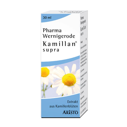 Pharma Wernigerode Kamillan® supra bietet natürliche Hilfe bei Magen-Darm-Beschwerden, bei Entzündungen im Mund- und Rachenraum, zur Behandlung von Bronchialerkrankungen und Reizungen der Atemwege sowie zur äußerlichen Anwendung bei entzündlichen Hautveränderungen. Das pflanzliche Arzneimittel enthält als Wirkstoff den hochkonzentrierten Extrakt aus Echter Kamille. Besonders geeignet als Inhalat beruhigt es Reizungen der Atemwege. Kamille fördert aktiv die Wundheilung und wird aufgrund ihrer entzündungshemmenden und antibakteriellen Eigenschaften geschätzt.