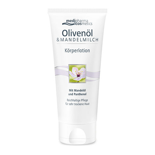 Die medipharma cosmetics Olivenöl & Mandelmilch Körperlotion verwöhnt sehr trockene Haut mit einer reichhaltigen Pflegeformel. Kaltgepresstes Olivenöl und pflegendes Mandelöl versorgen die Haut mit wertvollen Lipiden, während Panthenol und Milchproteine sie geschmeidig halten und vor dem Austrocknen bewahren. Mandelblütenextrakte runden die sanfte Formulierung ab und sorgen für ein gepflegtes Hautgefühl.